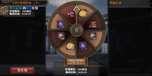 2、红包包含各种资源奖励以及钻石奖励,红包中包含一定量的初始钻石,当玩家通过转盘获得奖池百分比奖励时即可获得红包奖池中一定比例的钻石,抽奖的玩家如果没有获得钻石奖励,系统就会为红包奖池累积一定量的钻石。