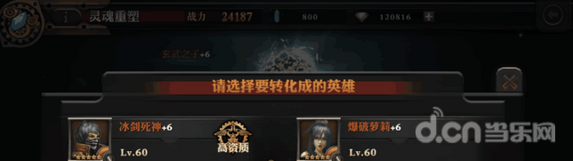 备注:当玩家等级达到60级以后,就可以获得重塑英雄灵魂的能力,将队伍中多余的英雄转化为玩家需要的英雄。