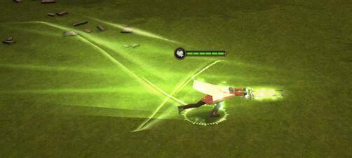 双剑向前打出一个气波,对沿途的敌人造成伤害。