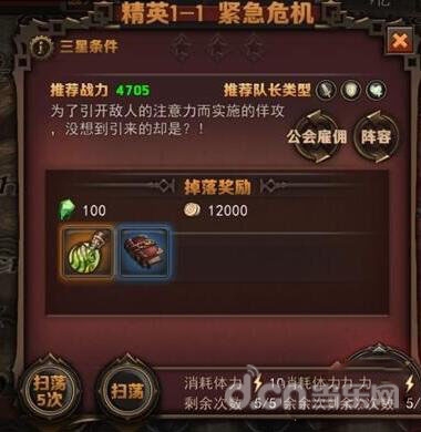 2、 玩家选择挑战普通副本或精英副本时,在遇到自己不易通过的关卡时,可以选择公会雇佣。