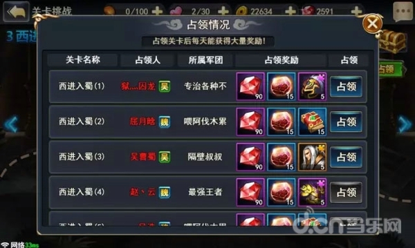 除了三星评级之外,在星数奖励的下方,有一个“关卡占领”的按钮,如果主公能够在现实之内超越过其他玩家的通关时间,在每天晚上10点的时候,便会获得一定量的钻石和进阶石,还有道具作为当天最速通关的奖励。