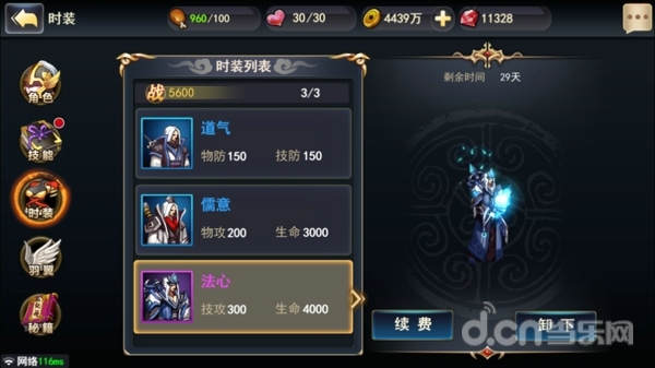 时装穿戴后可在城镇与关卡中形象外显,并且不同时装可增加不同的属性。