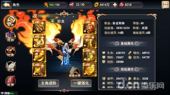 进入角色信息界面。角色信息涵盖了大部分个人内容。包括装备,技能,时装,翅膀,秘籍,进阶。