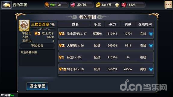 进入成员界面,军团长可以进行“晋升/剔除/邀请”