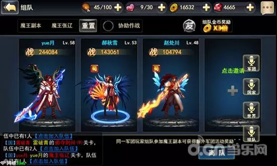 当主公达到35级之后,魔王副本就会开启,然而由于关卡难度极大,所以推荐各位主公最好组队进行,此外,如果队伍中队友越多,获得的金币奖励则会获得每人翻倍的奖励。