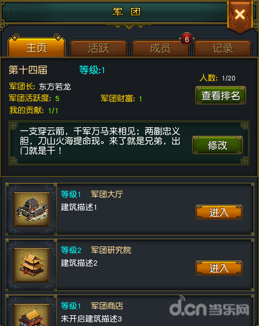 1.通过城中的军团建筑可以进入军团界面。