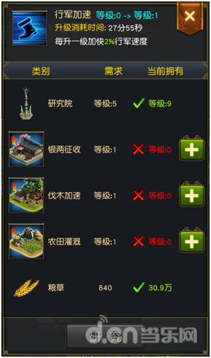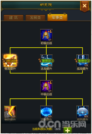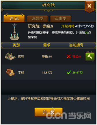 2.升级研究院建筑等级可以减少科技研究时间。