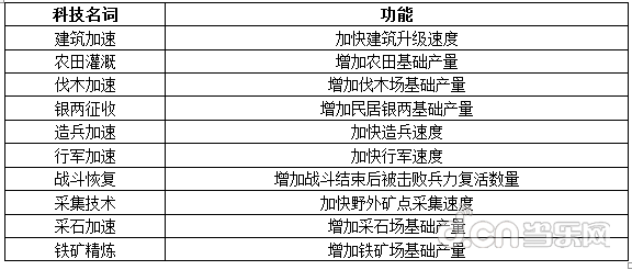 1.此处的科技均与城池建设相关,具体如下: