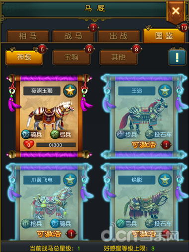 2.获得战马后,可激活该战马的图鉴,激活后可获得对应的属性提升