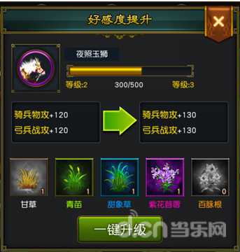 2.喂食战马草料,可以提升战马的好感度,不同的草料可提升的好感度不同