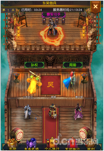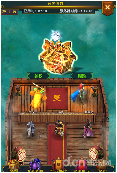 1.东吴借兵总共有30关,每关都会有一个守将,点击守将即可进入备战界面,战胜守军便可获得将领或者神兵,并开启下一个关卡。