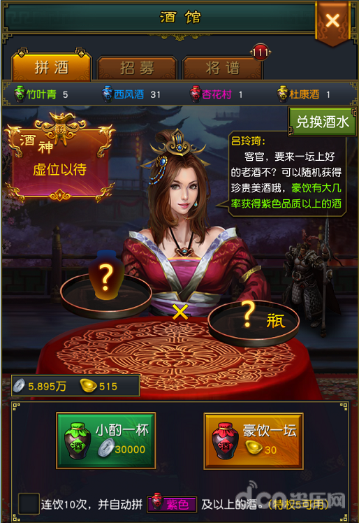 3.拼酒成功可以获得更多的当前品质的酒水,拼酒失败的话则会失去一部分酒水。