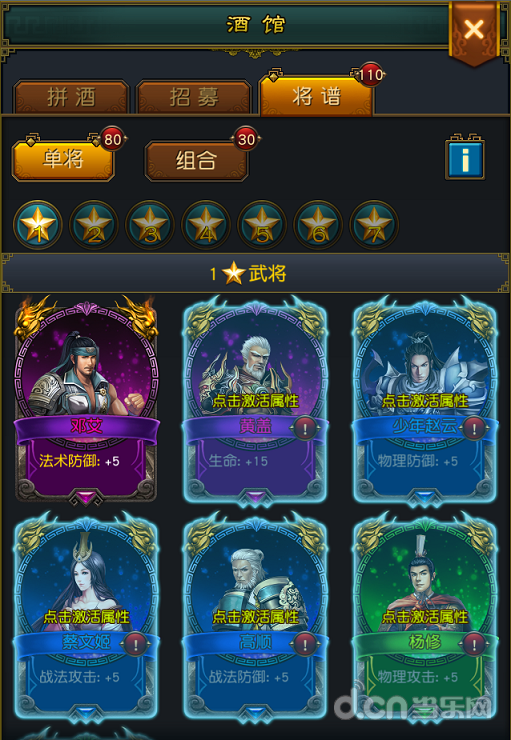 4.激活将谱组合可以获得更多的属性加成,但是只有玩家招募到一个组合中的所有武将,才能激活该组合的属性加成。
