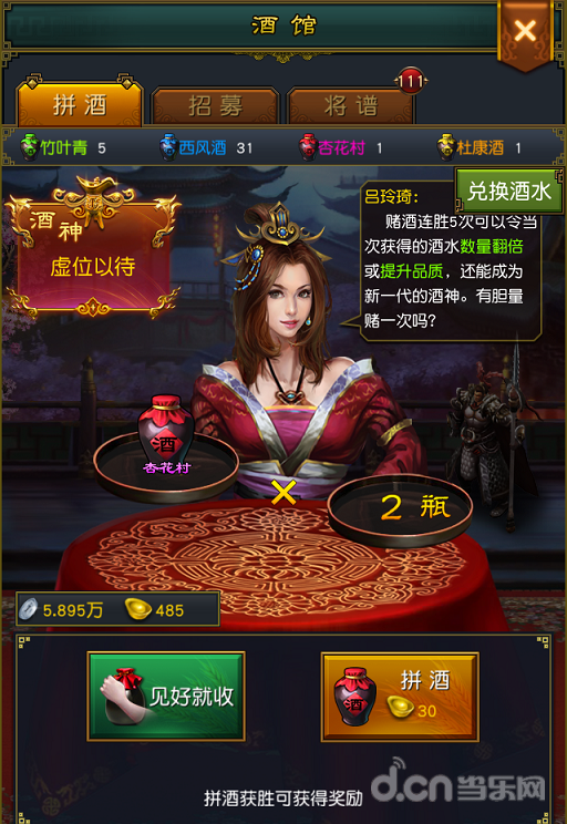5.连续5次拼酒成功可以获得“酒神”称号。