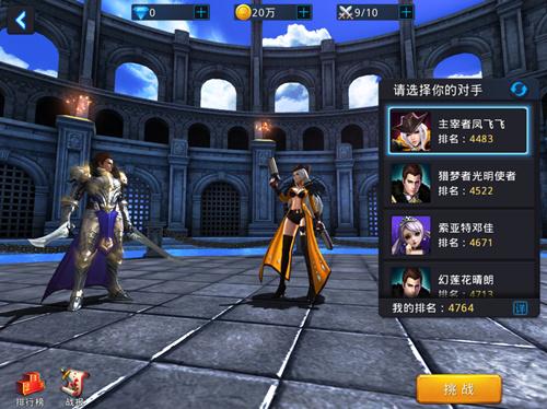 系统会自动为你分配几名对手,你可以选择其中一个作为对手,进行1V1的决斗。战胜对手就可以获得对方的名次。你的对手由电脑控制,并且会有一定的额外属性加成。