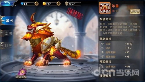 早就听说在神秘的东方有一头传说中的神兽——年兽,趁着新春佳节,洛亚大陆上的各位管理者们成功把它请到了洛亚大陆来做客。年兽来到洛亚后身兼数职,一重身份是公会新玩法的boss,给予所有勇于挑战的强者丰厚的奖励。不过它每次现身时间都只有30分钟,超过时间就会逃跑哦。相反,如果在短时间内挑战成功,获得的奖励也会翻倍。因此请挑战者们注意时间,把握机会。除了boss之外,年兽的另一重身份则是威猛帅气的新坐骑伙伴,玩家可以通过参加“幸运翻牌”活动获取“年兽魂魄”来合成坐骑。