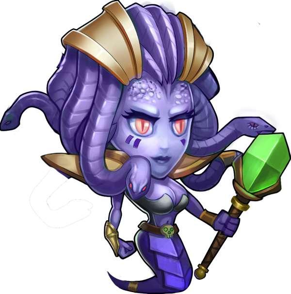 法力无边的女巫,拥有超自然法术,召唤光与暗、天与地之能量,守卫着娜迦族的和平与繁荣。她的善良也是征服众人的要点,她是娜迦族光与善的化身。