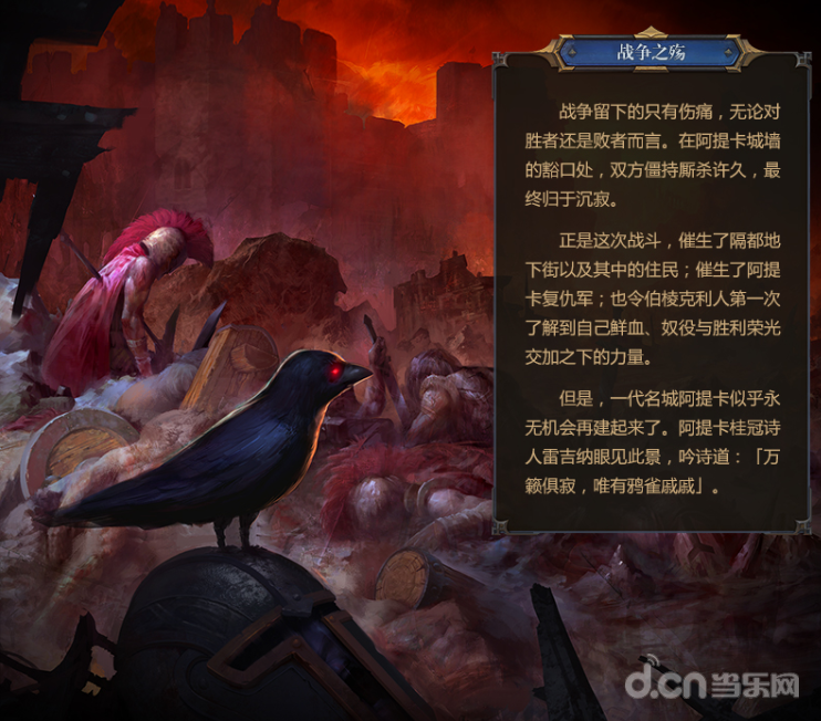 但是,一代名城阿提卡似乎永无机会再建起来了。阿提卡桂冠诗人雷吉纳眼见此景,吟诗道:「万籁俱寂,唯有鸦雀戚戚」。