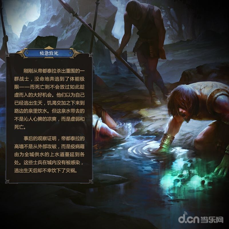 事后的观察证明,帝都泰拉的高墙不是从外部攻破,而是疫病藉由为全城供水的上水道蔓延到各处。这些士兵在城内没有被感染,逃出生天后却不幸饮下了灾祸。