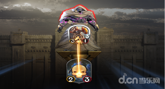 当玩家拖动已上场的己方生物对对手的生物进行攻击时,造成的伤害等同于己方生物的力量值。同时,己方生物将会损失等同被攻击生物力量值的生命值,如下图所示: