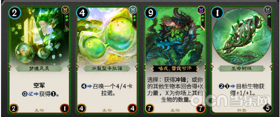 绿色卡牌重视大型生物,并有良好的强化生物的能力。