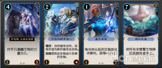 蓝色卡牌重视策略,拥有丰富的限制型能力。