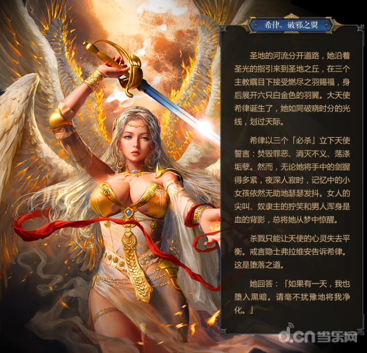 圣地的河流分开道路,她沿着圣光的指引来到圣地之丘,在三个主教瞩目下接受燃尽之羽赐福,身后展开六只白金色的羽翼。大天使希律诞生了,她如同破晓时分的光线,划过天际。