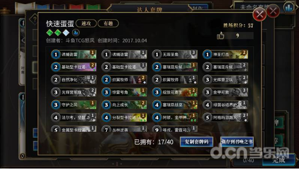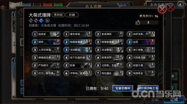如果要使用这副套牌,请先将套牌码复制到剪贴板,然后在“达人套牌”里点击“使用套牌码”进行粘贴。