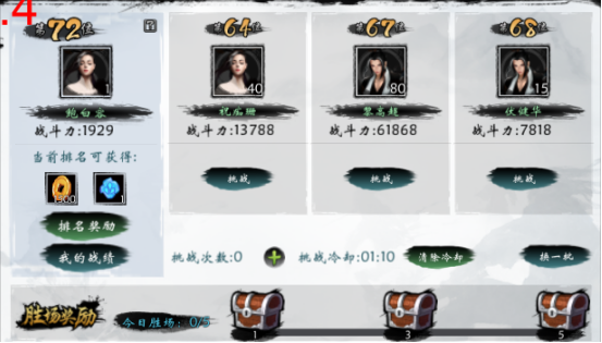 1.玩家可以选择右侧的排名的玩家进行挑战,挑战比自己排名高的玩家,胜利将互换排名