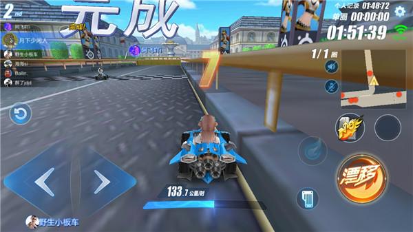 曲水流觞:要想在终点前超越,就得与第三名的距离保持紧密,在比赛过程中稳稳地行驶,不要铤而走险地超越,让第三名放松警惕。等到终点前的一个弯道,趁其不备小幅度漂移加上氮气提速,用车身侧面撞击第三名的车身或者撞墙反弹调整方向,就能不借助漂移成功高速过弯,这样打破常理的过弯技巧,用在最后一个弯道超车非常实用。