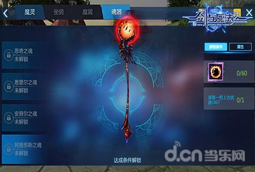 在魂器界面中,有多把魂器可供玩家养成。通过魂器的培养与升阶,玩家不仅可以获得角色属性上的提升,当魂器打达到指定阶层时,还可激活其外观,作为玩家的武器外观。多多解锁魂器,提升战力的同时,也不用发愁没有合适的武器来搭配你酷炫的时装了!