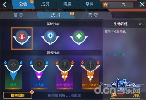 公会的福利再次增长!公会技能正式开启,只要你进入公会,并努力完成游戏日常就可以轻易开启公会技能,为自己增加有益效果。公会技能共有七种,根据玩家在公会中的职务不同,所获技能数量也不同,公会职位高的玩家,为公会奉献更多,所以可以拥有更多强大的技能,公会会长可开启全部技能。公会技能可以通过升级,而更加强大,勇士可通过公会福利、公会活动等获取经验石,使用它可升级公会技能!