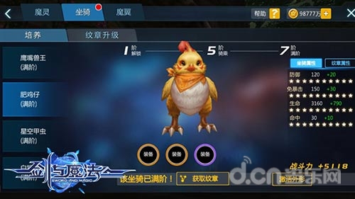 纹章同样可以升级,吞噬纹章和纹章碎片可以积攒能量值,通过消耗能量值可以升级纹章。在新版本中,玩家可通过新开启的“纹章占星”来获得纹章。纹章占星与普通占星功能相同。身穿完美装备,跨坐威力四射的流弊坐骑,实力秒杀你的敌人吧!