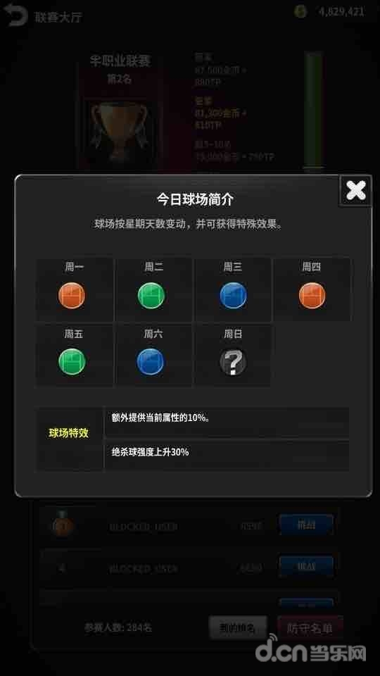 (每日场地加成提供总属性10%+绝杀球30%提升强度,三种场地各一个保证不管任何一天都能均衡实力发挥,不会大起大落)