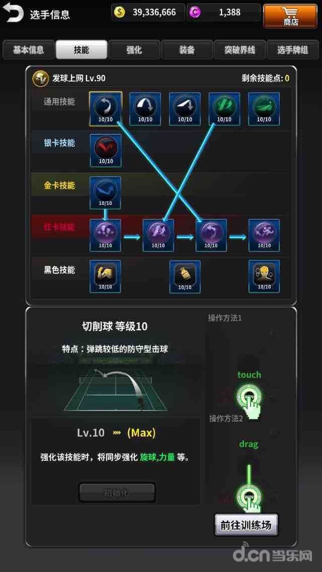 底线防守型:《高吊球》,《鱼跃救球》,《发球技能》