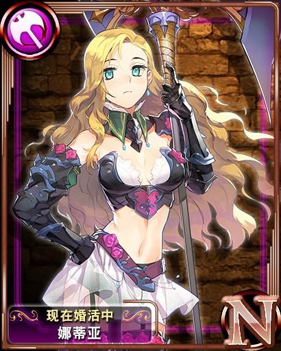 人物介绍:在战场上寻求邂逅的女佣兵。对结婚充满憧憬,每天都在锻炼自己的战斗力及女性魅力,但不知为什么总是无法到达结婚这一步,令她十分沮丧。虽然是位美女,个性也很好,但因为太过于寻求邂逅,陷入总是吓到对方的恶性循环……她现在26岁。