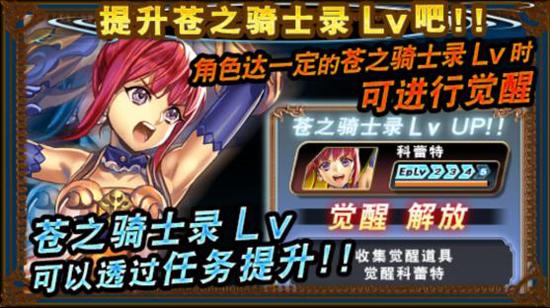 玩家的苍之骑士录LV可以通过通过本传和骑士传进行提升。