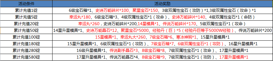 活动期间、累计充值达到指定金额、即可额外获得以下奖励: