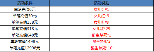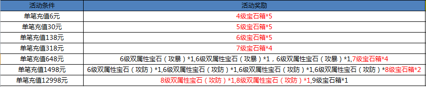 活动期间、单笔充值达到指定金额、即可获得超值好礼(请在活动下架前及时领取):