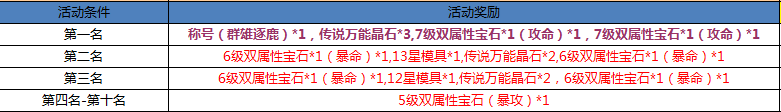排行榜根据排名获得奖励,活动结束排行榜积分前十名获得丰厚奖励: