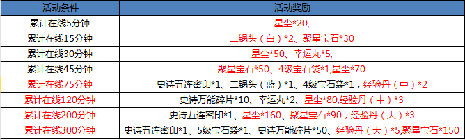 活动内容:活动期间满足一定的在线时间即可领取好礼