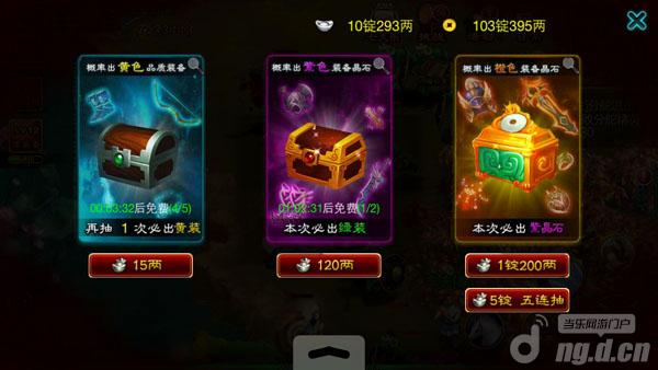 第一开普通宝箱15两一次,开到你手麻都开不了多少钱,五次就可以开到一个三星的黄装,然后转移到低级的装备或者白装拆解有10个宝石,又可以合装备。