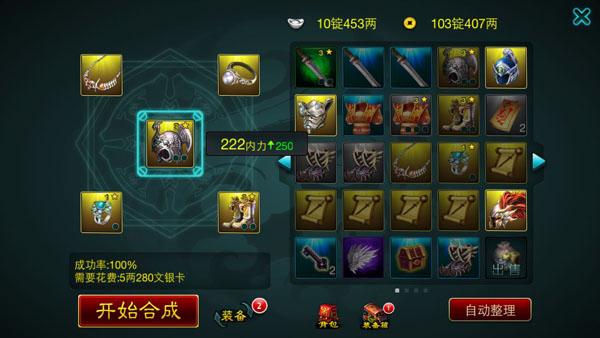 备注:如果被合成的同品阶装备(道具)不满4个,则不能进行合成。合成需要消耗一定的游戏币。