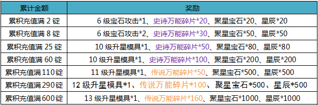 活动期间,累计充值达到指定金额,即可获得超值返利回馈: