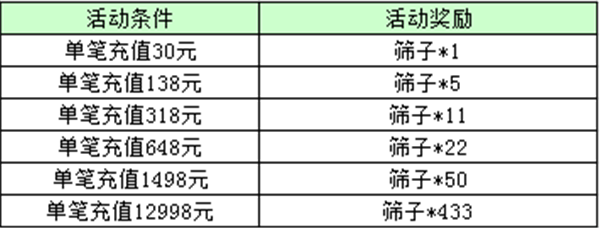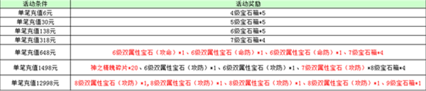 活动期间、单笔充值达到指定金额、即可获得超值好礼(请在活动下架前及时领取活动)