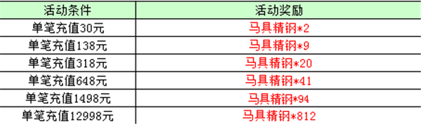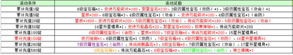活动期间、累计充值达到指定金额、即可额外获得以下奖励: