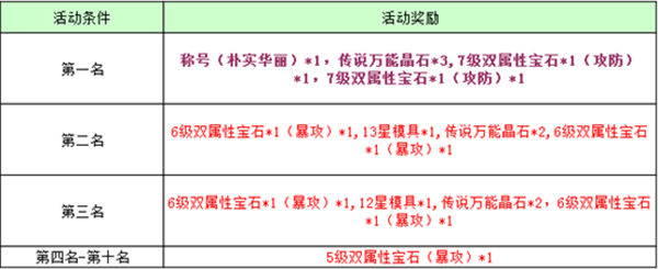排行榜根据排名获得奖励,活动结束排行榜积分前十名获得丰厚奖励: