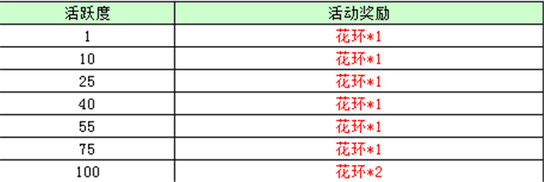 活动期间、达到一定活跃值活跃宝箱可额外获得: