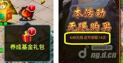 2、每一档次的养成基金每天只能领取一次,比如A在一轮活动中充了1个648元和1个318元,他每天可以领取2个礼包,连续领取15次;B充了2个648元,他每天只能领取1个礼包,但可以领取30次;