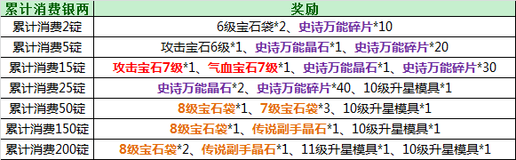 年末版本越来越近,小图给大家争取来的福利也越来越丰厚哟。传说晶石,8级宝石,11星模具,累计消费指定金额都会免费送给大家,不能更赞啊。